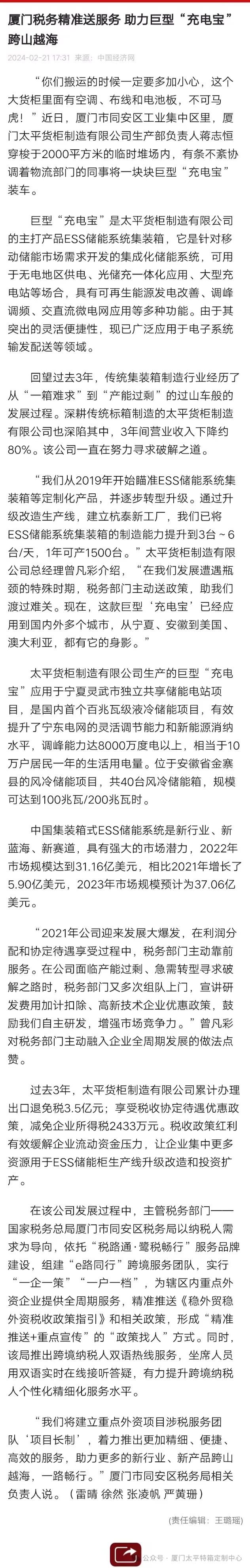 年前,廈門同安區(qū)稅務(wù)局黨委委員總會(huì)計(jì)師方立昱,市稅務(wù)局國(guó)際處蔡福田副處長(zhǎng)等一行蒞臨XPCL舉辦“稅路通,鷺稅暢行”企稅沙龍活動(dòng)。報(bào)道在中國(guó)稅務(wù)網(wǎng)發(fā)布后,中國(guó)經(jīng)濟(jì)網(wǎng)對(duì)文章進(jìn)行了轉(zhuǎn)載。