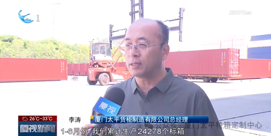 李總在接受記者采訪時指出,受益于國際航運周期拉長,全球集裝箱需求增長,今年以來,新造集裝箱出口迎來“井噴”。2024年1到6月份我司出口了24278個新造標(biāo)準(zhǔn)集裝箱, 金額3.16億元,同比分別增長192.8%和148.7%。